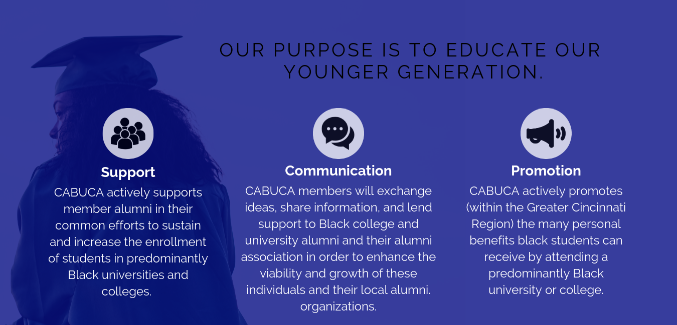 For over 30 years CABUCA has spotlighted the academics, achievements and legacy of historically Black colleges and universities to students in the Greater Cincinnati area. In an effort to increase attendance of students at HBCUs, CABUCA is announcing the “2025 CABUCA Carr/Daniels Essay Contest”. Each winner of this contest will receive a $500 book scholarship for use at any accredited HBCU for the 2025-2026 school year